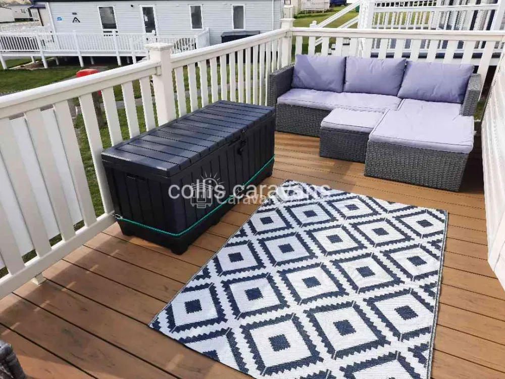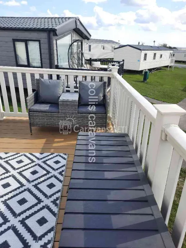 There is a full veranda with a rattan garden suite and outside lights. You will find parking next to the caravan for more than one car.