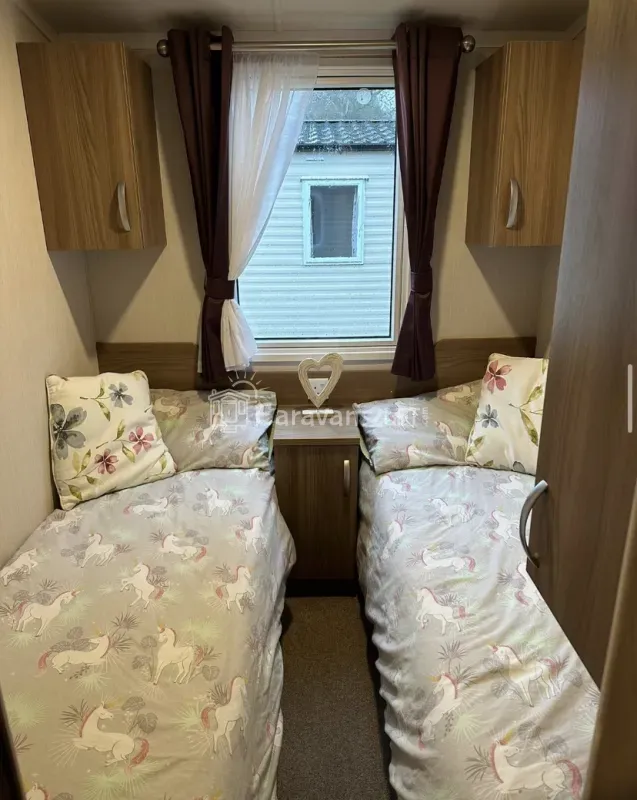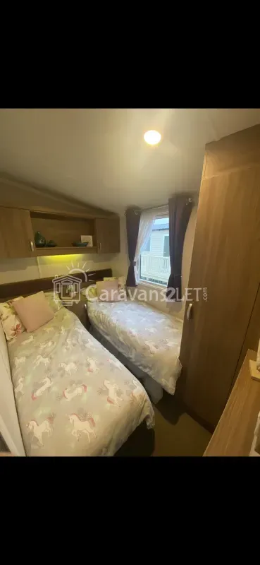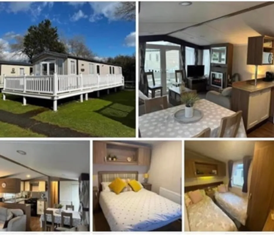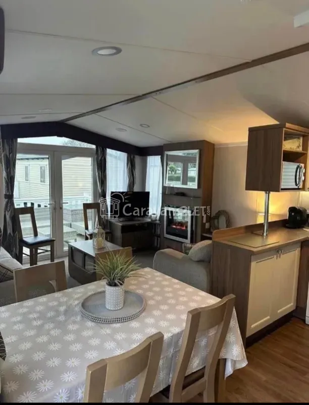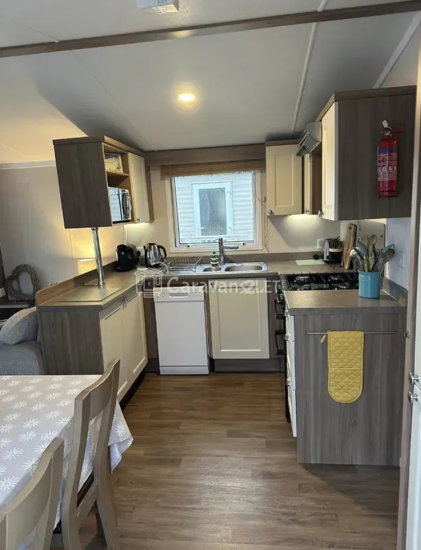 Our caravan has patio doors with full wrap around decking, 1 double bedroom, 2 twin bedrooms and pull out bed in lounge, comfortably sleeping 6-8 people, 1 bathroom with shower and an en-suite. large open plan living and dining area with TV and DVD player (with an extensive DVD collection!), a fully equipped kitchen with everything you will need including a dishwasher, Large fridge freezer & Tassimo coffee pod machine.